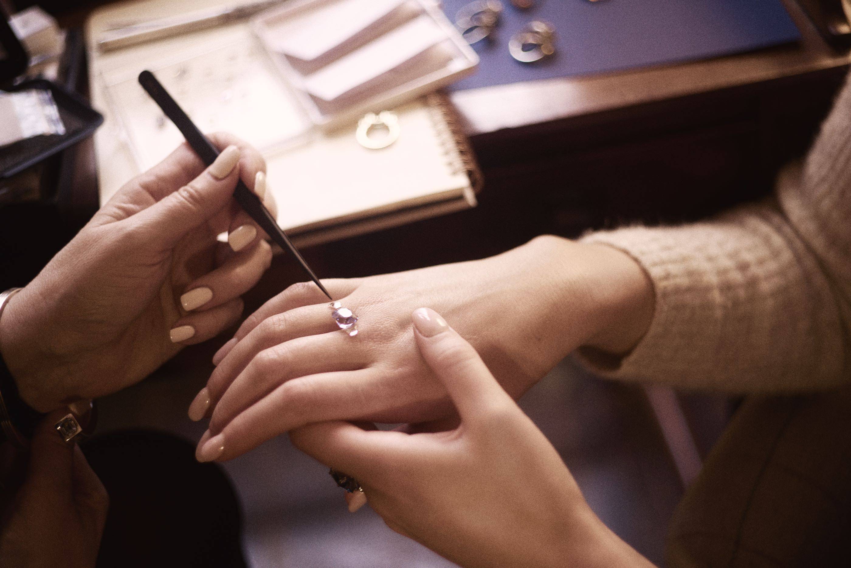 She will show you gems and sketches, find out exactly what it is you are looking to have made and take you through all the many possibilities.
